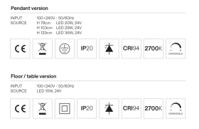 - Tisch- und Bodenversion: Steckernetzteil (Output/Ausgang: 24 V). Stromkabel mit integriertem