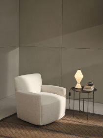 Eine filigran integrierte Aluminiumstruktur im Inneren sorgt für zuverlässige Stabilität, ohne die klare Form durch sichtbare Befestigungen zu unterbrechen. Schlanke, soft-touch schwarze Verbindungselemente betonen die Silhouette dezent und verleihen Helium Mini ihre unverwechselbare Leichtigkeit.