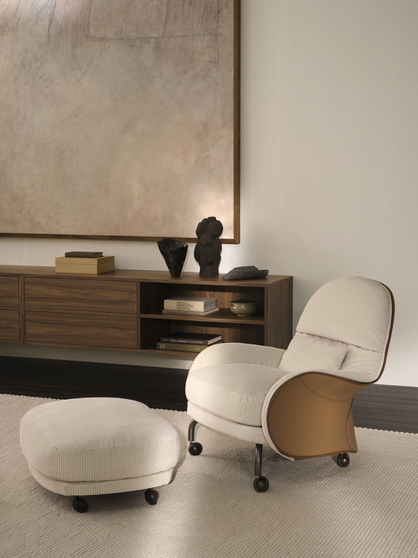 Die Exzellenz eines modernen Lounge-Sessels zeigt sich in seinem kompromisslosen Design, den edlen Materialien, der handwerklichen Präzision und der perfekten Ausführung. Louisiana ist ein zeitgemäßer Lounge-Sessel mit unverwechselbarem Charakter. Entworfen von Vico Magistretti, greift seine Form die Silhouette eines Pferdesattels auf: Die Nähte folgen den fließenden Linien, das Leder gewinnt mit der Zeit an Schönheit und Ausdruck, während eine feine Baumwollpaspel die herausnehmbare Innenpolsterung konturiert. In Kombination mit dem passenden Hocker entsteht ein außergewöhnlich komfortabler Rückzugsort – eine elegante Ruhezone, die das eigene Zuhause in einen Ort vollkommener Entspannung verwandelt.