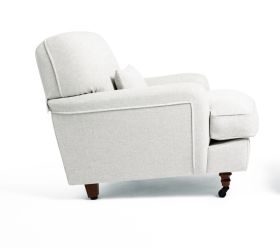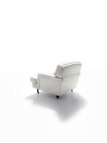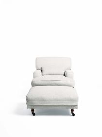 Auch die feinsten Details sind harmonisch auf das Gesamtbild abgestimmt: gedrechselte Holzfüße mit dezenten Lenkrollen sowie ein Kissen mit Gänsedaunenfüllung unterstreichen den hohen Anspruch an Komfort, Handwerkskunst und Design.