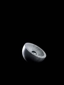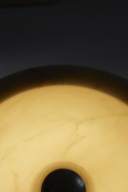 Die harmonische Halbkugelform verleiht der Leuchte ihre besondere Präsenz. Der transparente Glasdiffusor mit einer Halbabdeckung aus poliertem Aluminium lenkt das Licht sanft und erzeugt eine weiche, beinahe schwebende Lichtstimmung. Durch die sorgfältig ausgewählten Materialien entsteht ein faszinierendes Zusammenspiel von Struktur, Reflexion und Licht.