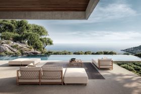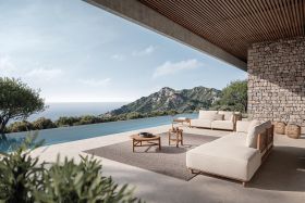 Als Eckmodul eignet sich dieses Element ideal, um eine Lounge zu erweitern oder eine großzügige Ecke zu definieren – ob im privaten Garten, am Pool oder im anspruchsvollen Hospitality-Setting.