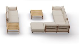 Die Salina Settings zeigen, wie vielseitig sich die Salina Kollektion als modulare Outdoor-Lounge inszenieren lässt: warme Teak-Flächen, Details aus gebürstetem Edelstahl und die charakteristischen Wicker-Paneele in Wheat treffen auf großzügige, wetterfeste Polster. So entstehen Settings, die gleichermaßen einladend, hochwertig und klar in der Linie wirken – für Terrasse, Garten und anspruchsvolle Objektbereiche.
