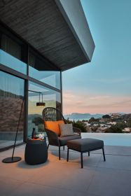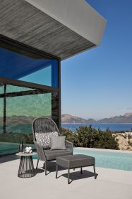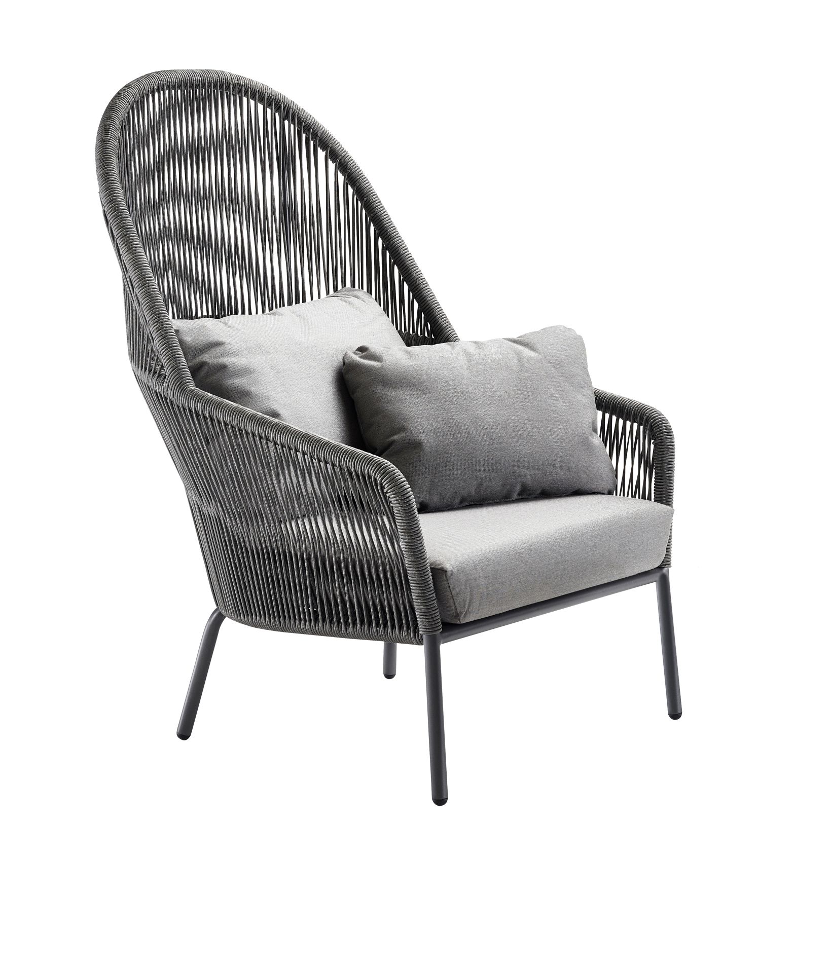 Der LOOP Lounge Sessel Hochlehner von SOLPURI verbindet eine grazile, weich gerundete Formgebung mit elegantem Minimalismus und besonders hohem Sitzkomfort. Das filigrane Gestell, die charakteristische String-Flex-Bespannung und die hohe Rückenlehne verleihen dem Sessel eine leichte, stilvolle Ausstrahlung und machen ihn zu einer komfortablen Wahl für anspruchsvolle Outdoor-Lounge-Bereiche.