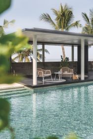 Mit der FRESCO-Kollektion greift Matteo Thun den Geist und den Stil des ikonischen Designs der 1960er Jahre auf, das mit modernen Materialien für die neueste Generation von Sonnenanbetern und geselligen Menschen wiederbelebt wurde. Das handgeflochtene, allwettertaugliche, weizenfarbene Outdoor-Geflecht sorgt für eine natürliche Haptik, während die intuitiven Konturen der Lounge- und Esszimmerstühle einen auffälligen Stil mit einer perfekt an die menschliche Form angepassten Sitzfläche verbinden. Beistell- und Esstische aus weißem, pulverbeschichtetem Aluminium, Keramik in der Farbe Bianco und geflochtene Geflechtbeine runden den zarten, raffinierten Stil dieser Kollektion ab.