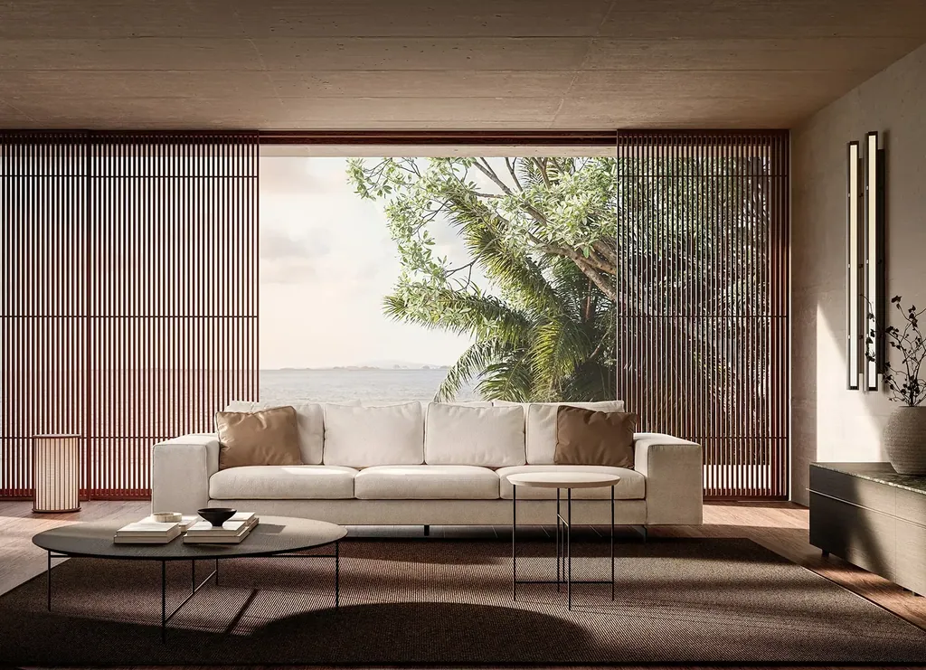 Die modularen Sofas der Landscape-Kollektion werden mit der neuen Version Flying weiterentwickelt. Sie übernimmt die markante, quadratische Formensprache der Serie, interpretiert diese jedoch mit einer neuen, zeitgemäßen Linienführung. Flying zeichnet sich durch ein schlankeres Design aus: eine dünnere Sitzfläche, eine leichtere Konstruktion und höhere Füße verleihen dem Sofa eine besonders elegante und luftige Anmutung – stets im Zeichen des hochwertigen Made in Italy.