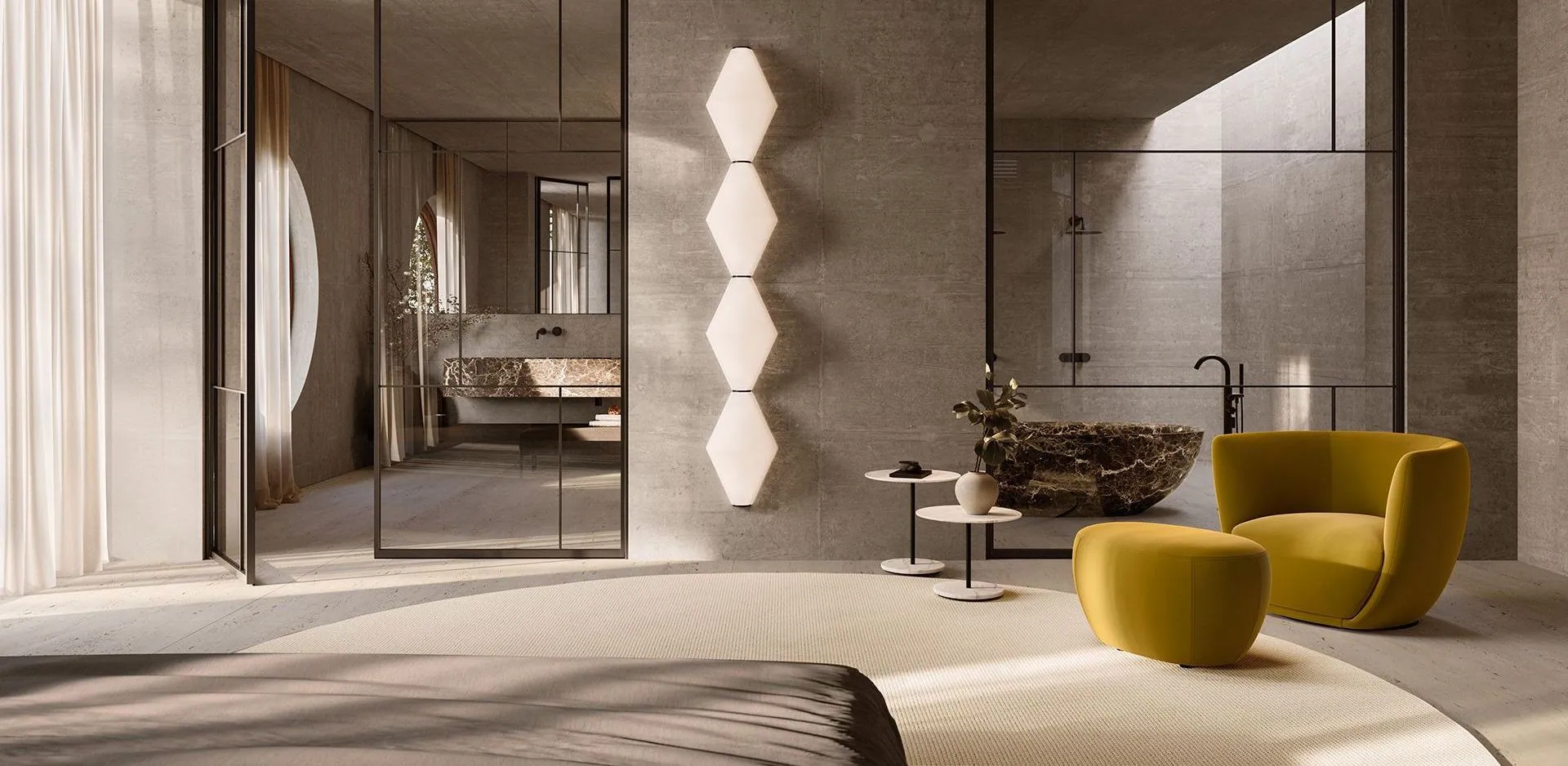 Der Name Talos leitet sich von einer in Polynesien beheimateten Pflanze ab, die durch den starken Kontrast zwischen der Größe ihrer Blätter und ihrem äußerst feinen Stiel gekennzeichnet ist. Diese Ambivalenz greift der von Keiji Takeuchi entworfene Couchtisch auf: Ein Objekt, das von der Kreisform von Sockel und Marmorplatte in zwei unterschiedlichen Durchmessern geprägt ist, verbunden durch eine feine, beinahe unauflösliche Linie.