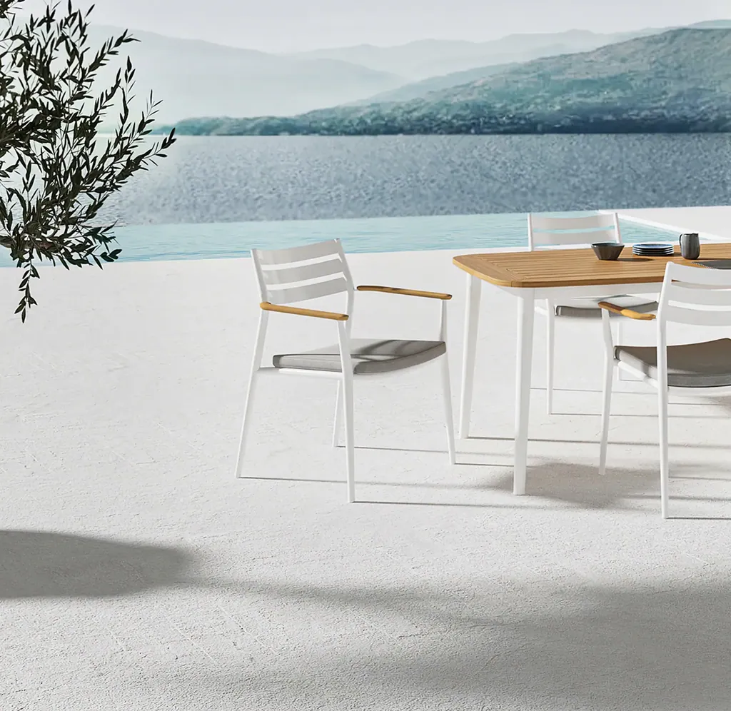 Die Kollektion PIA von Solpuri verbindet klare Gestaltung mit feinen Proportionen und einer angenehm leichten Ausstrahlung. Elegant verjüngende Linien, hochwertiges Aluminium und warme Materialakzente schaffen ein modernes Outdoor-Design, das Komfort, Funktion und zeitlose Eleganz harmonisch vereint.