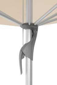 Gestell: 8-teilig aus Aluminium natureloxiert, 100% rostfrei, Schrauben und Nieten aus Edelstahl, mit zweiteiligem profiliertem Mast 67 × 3 mm, gegenläufiges Öffnungsprinzip für leichtes Öffnen.